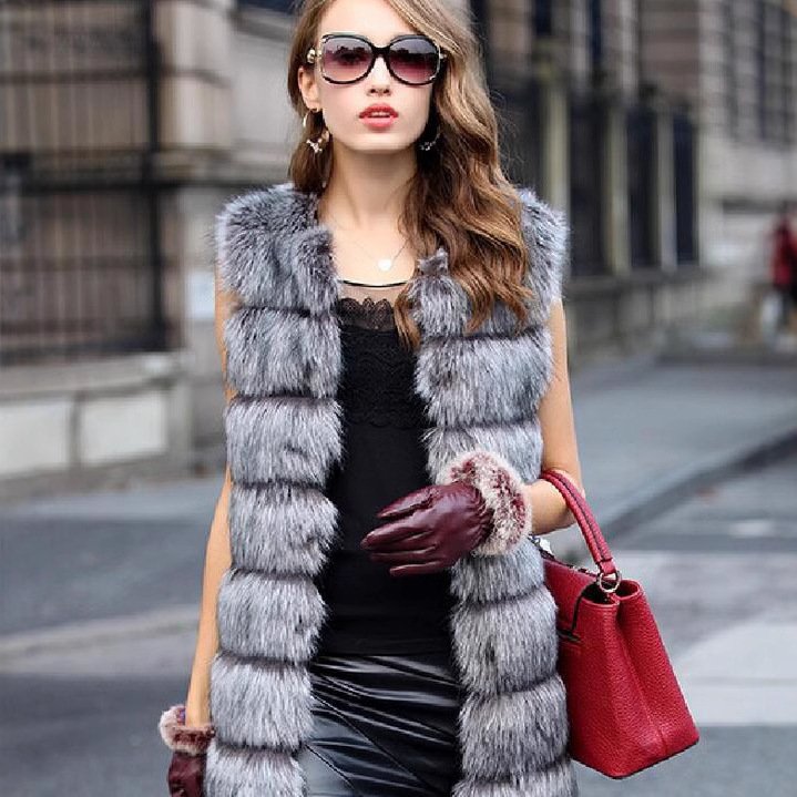 2018秋冬の新型の特価のキツネの毛は毛皮の馬の甲の婦人服のコートの中で長いタイプの人造の毛をまねてベストをつなぎます。