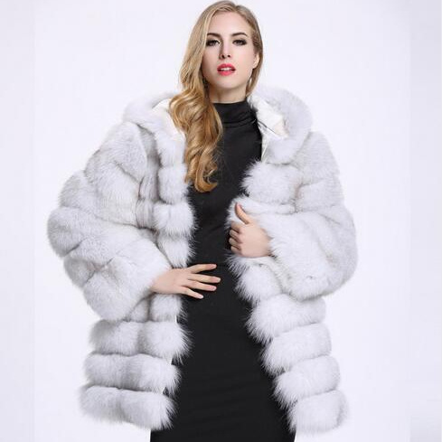 2023キツネ毛七分袖の中の長さの毛皮の皮のコートの高級な気質の女性の保温の純色のキツネ毛