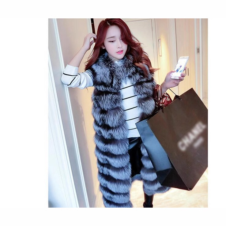 2023新型の発売は毛皮をまねてキツネの毛のコートの中の長い外国貿易の婦人服の卸売りの毛皮のメーカーをつなぎ合わせます。