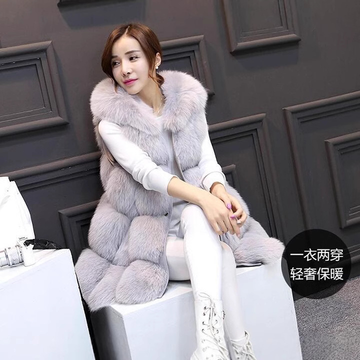 欧米の人気モデルは、毛皮の毛皮の帽子をかぶって、毛皮のコートの女装の長い袖なしの馬甲2018の新型です。