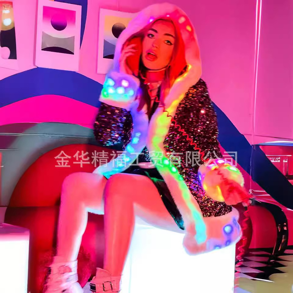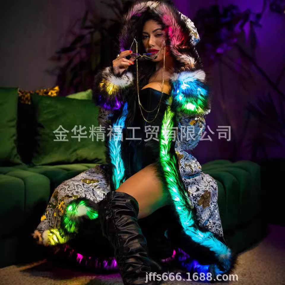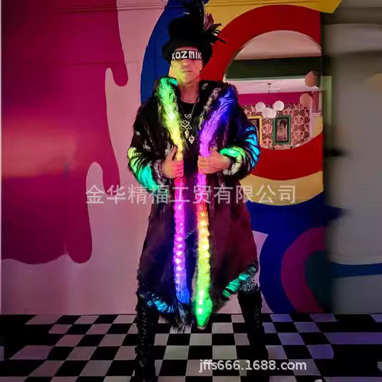 毛皮のコートのメンズアマゾンの爆発的なカーニバルのパーティー服のリモコンLED欧米のコスプレ服