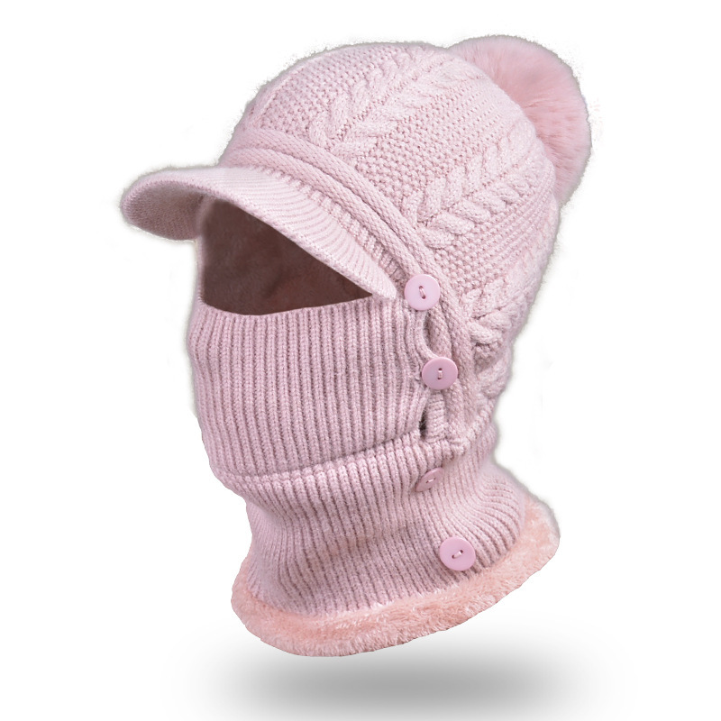 欧米のクロスボーダーのニットの帽子のマフラーの一体の女性の秋冬の帽子とベルベットの保温の屋外のマフラーの毛糸の帽子