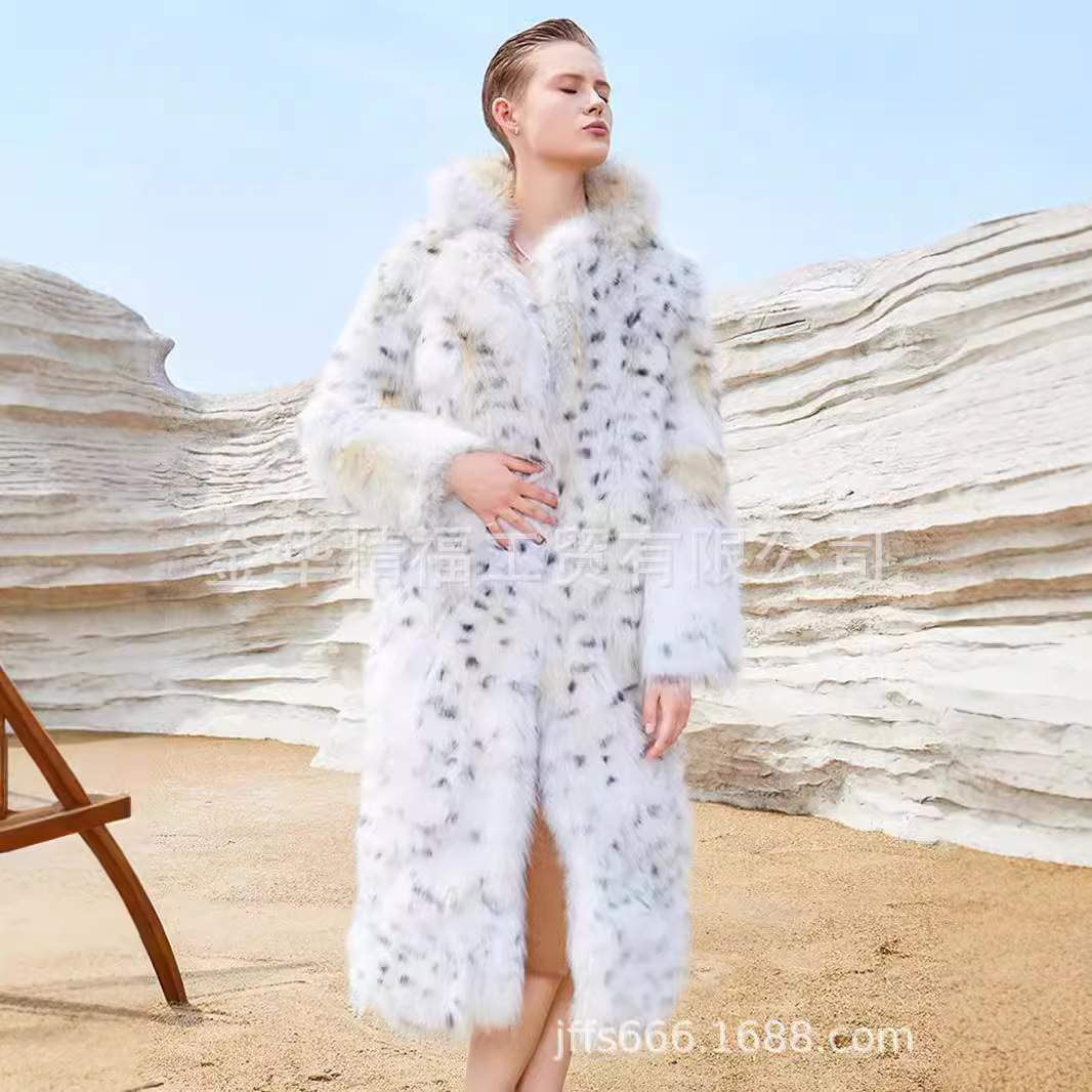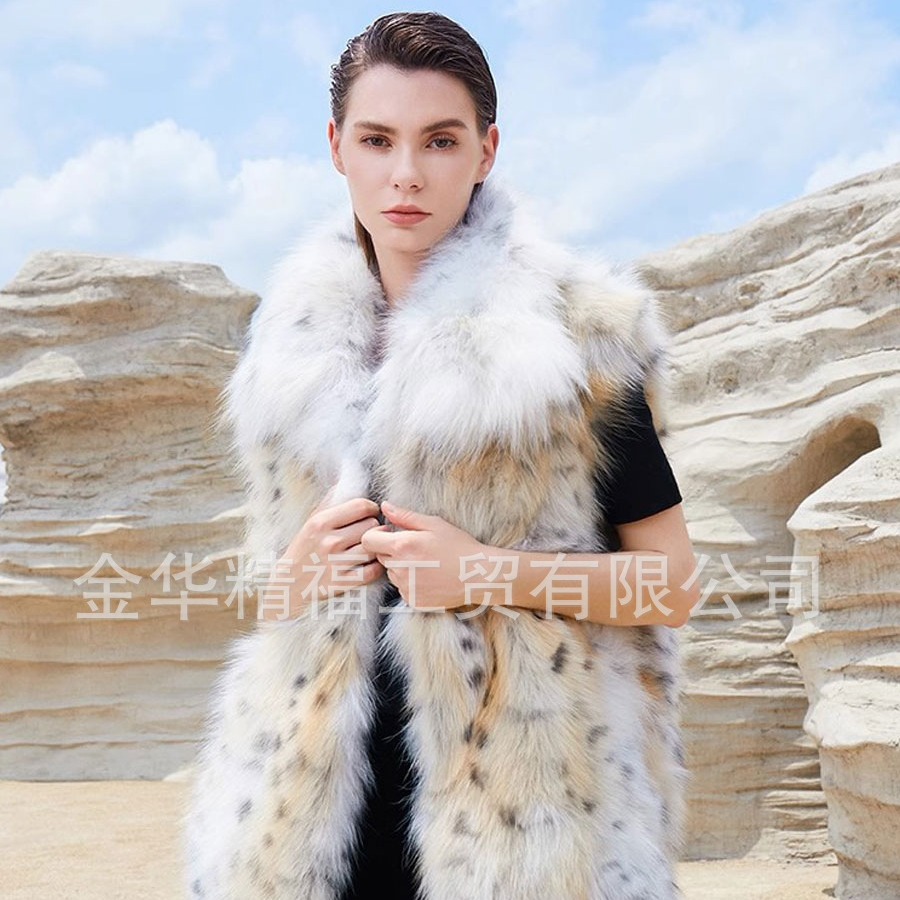 アマゾンの爆発的なキツネの毛皮のコートの女装欧米の国境を越えた長いヒョウの紋様の山猫の毛皮のコート