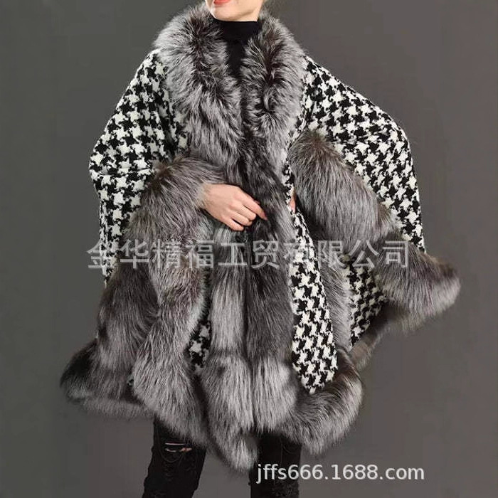 秋冬の新型の越境はキツネの毛のマントの女性の大きいサイズのカーディガンのゆったりしているマントのニットの外をまねます。