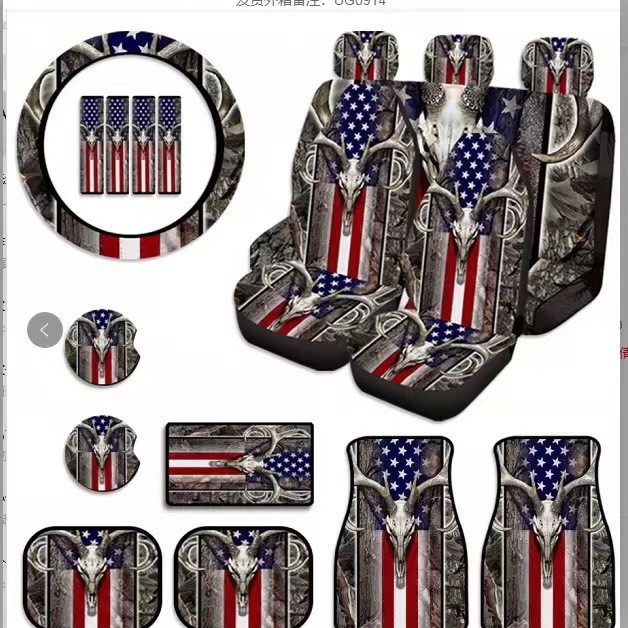 アマゾン、ヨーロッパ、アメリカのtemu、車用ユニバーサルシートカバー、プリント、海外輸出、アメリカ国旗、エルク柄、19点セット