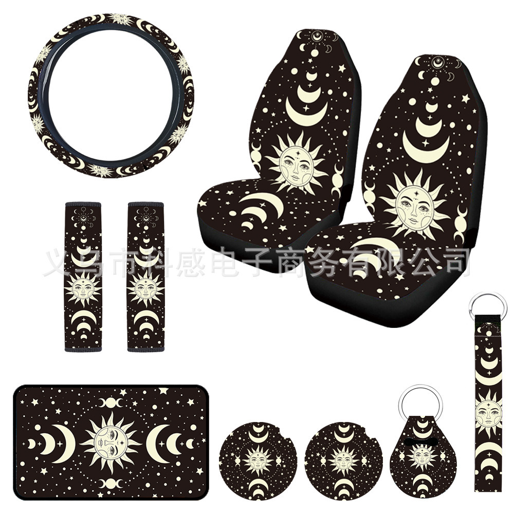 自動車クロスボーダー通用プリント太陽神前シートカバー10点セットアマゾンプラスアクセサリー