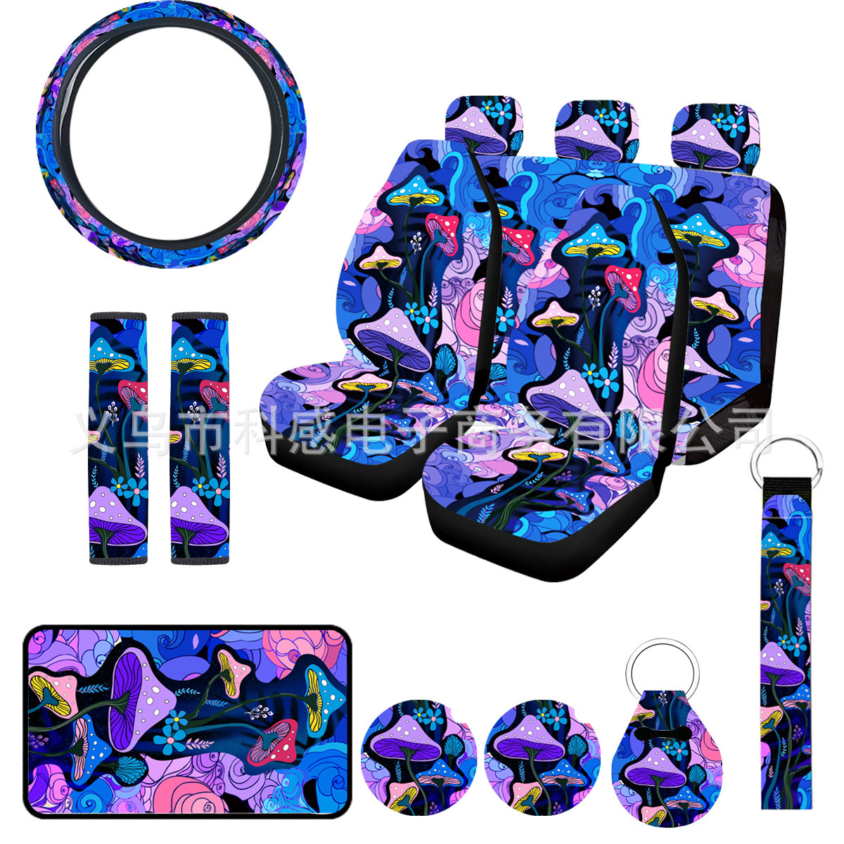 外国貿易クロスボーダーアマゾン四色キノコセット15点セットプリント自動車シートカバーハンドルカバー