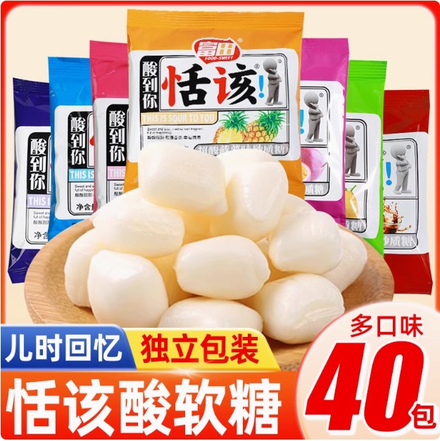 富田恬はこの酸っぱい砂糖の果物のグミのキャンディーの8090後の小さい時ノスタルジックなキャンディーのネットの赤いお菓子の新年