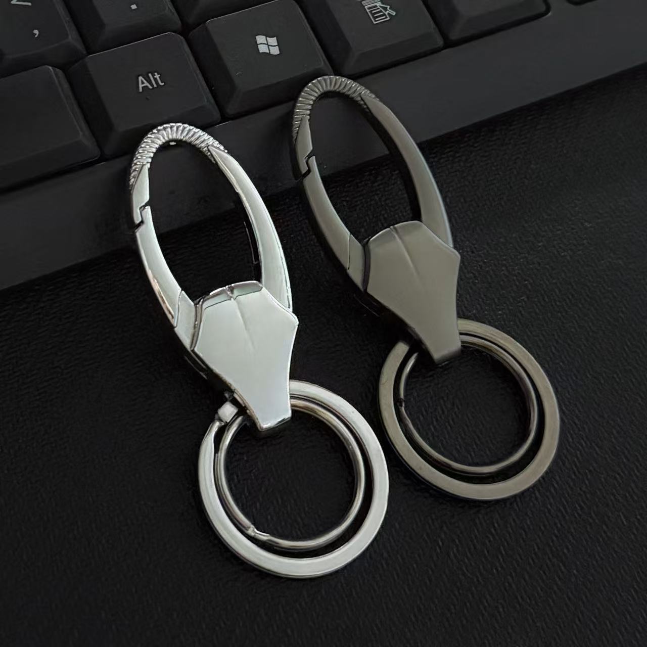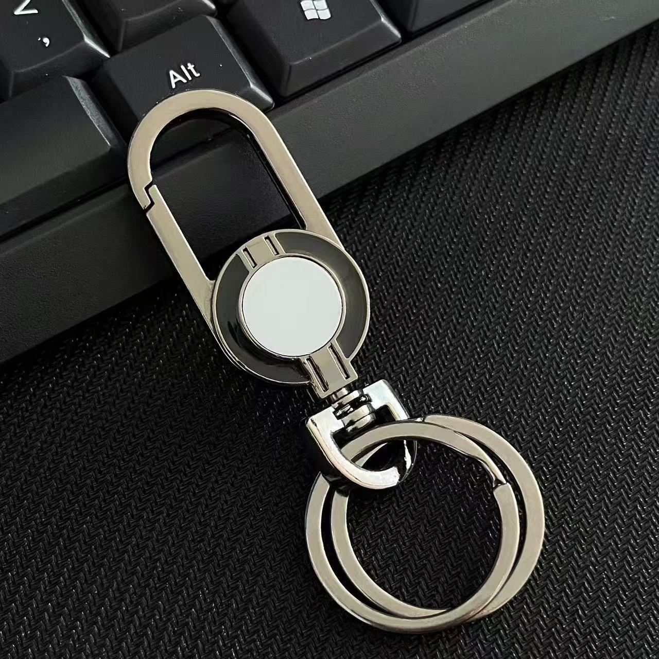 クロスボーダー2024年新型自動車キーホルダー男性二重リング金属ロックリング男性腰掛けボタン紛失防止耐久性