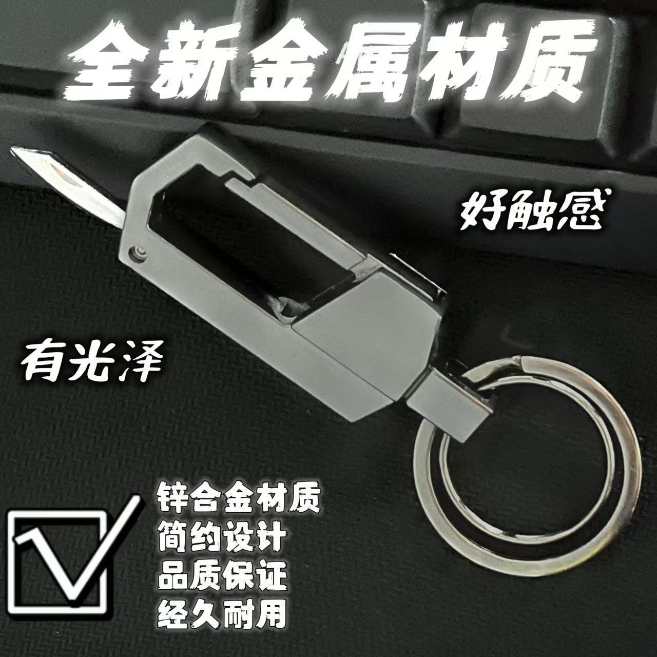 電気商の起爆金はナイフ付きの自動車のキーホルダーを持っています。