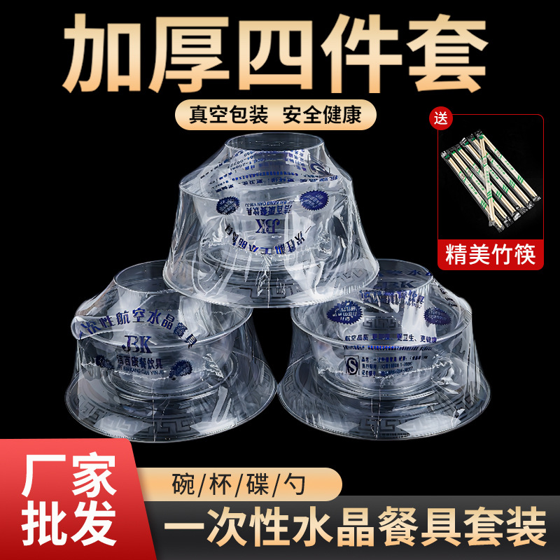 結婚式の使い捨てホテル食器、ボウルと箸セット、航空機用3点セット、食品グレードの宴会2点セット、4点セットクリスタル