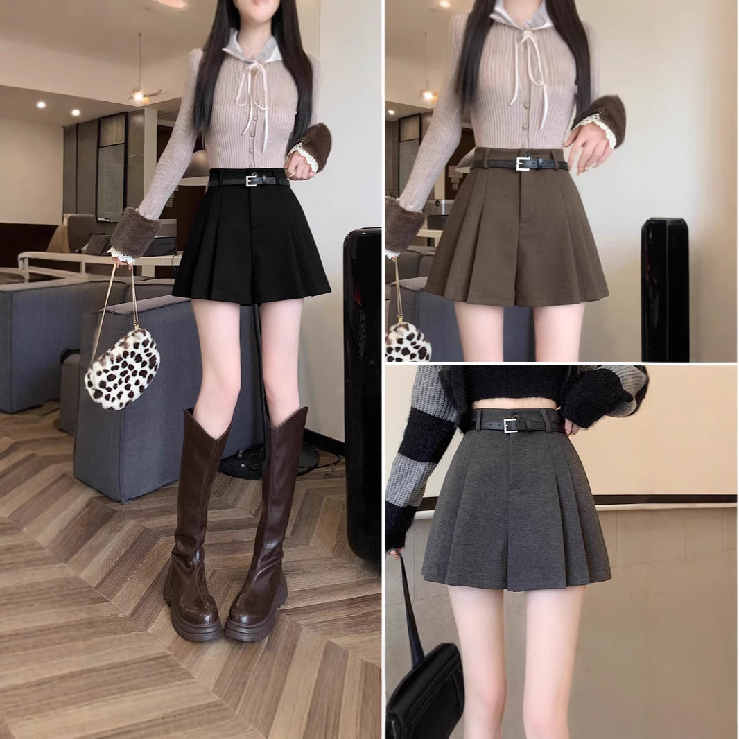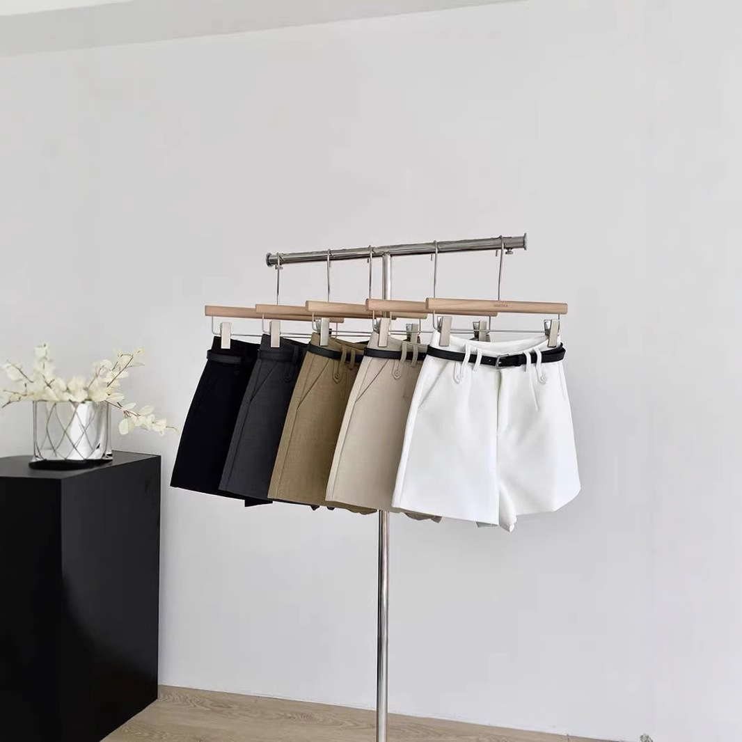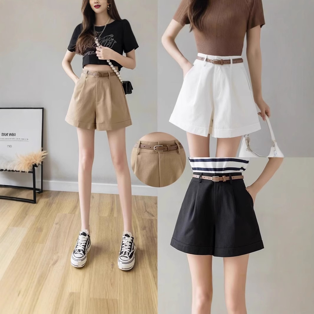 白アンズ色のベルト付きのスーツのショートパンツ女性2025春の外は広い足で痩せています。