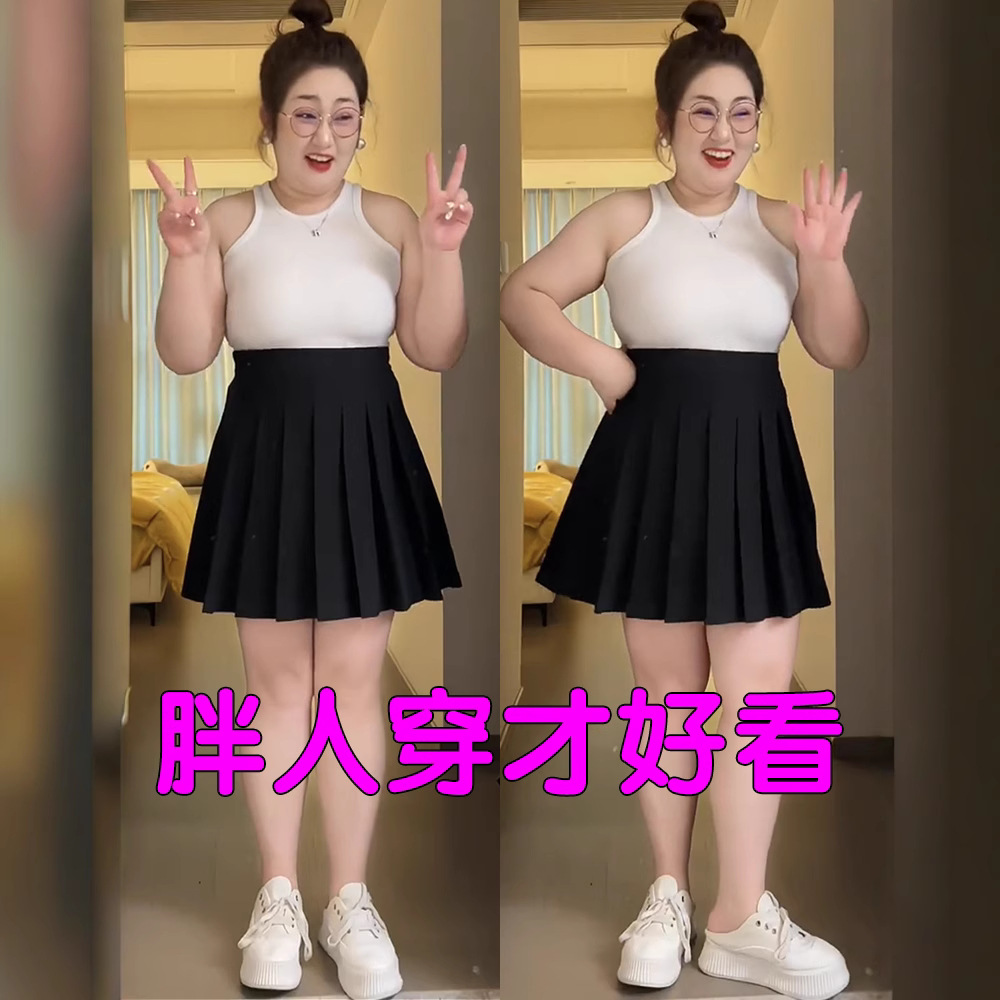 ギャルの新しい大きいサイズのスーツのスカートの女性の半身のスカートのa字は肉のスカートの黒色のスカートの太っている妹の200斤を覆います。
