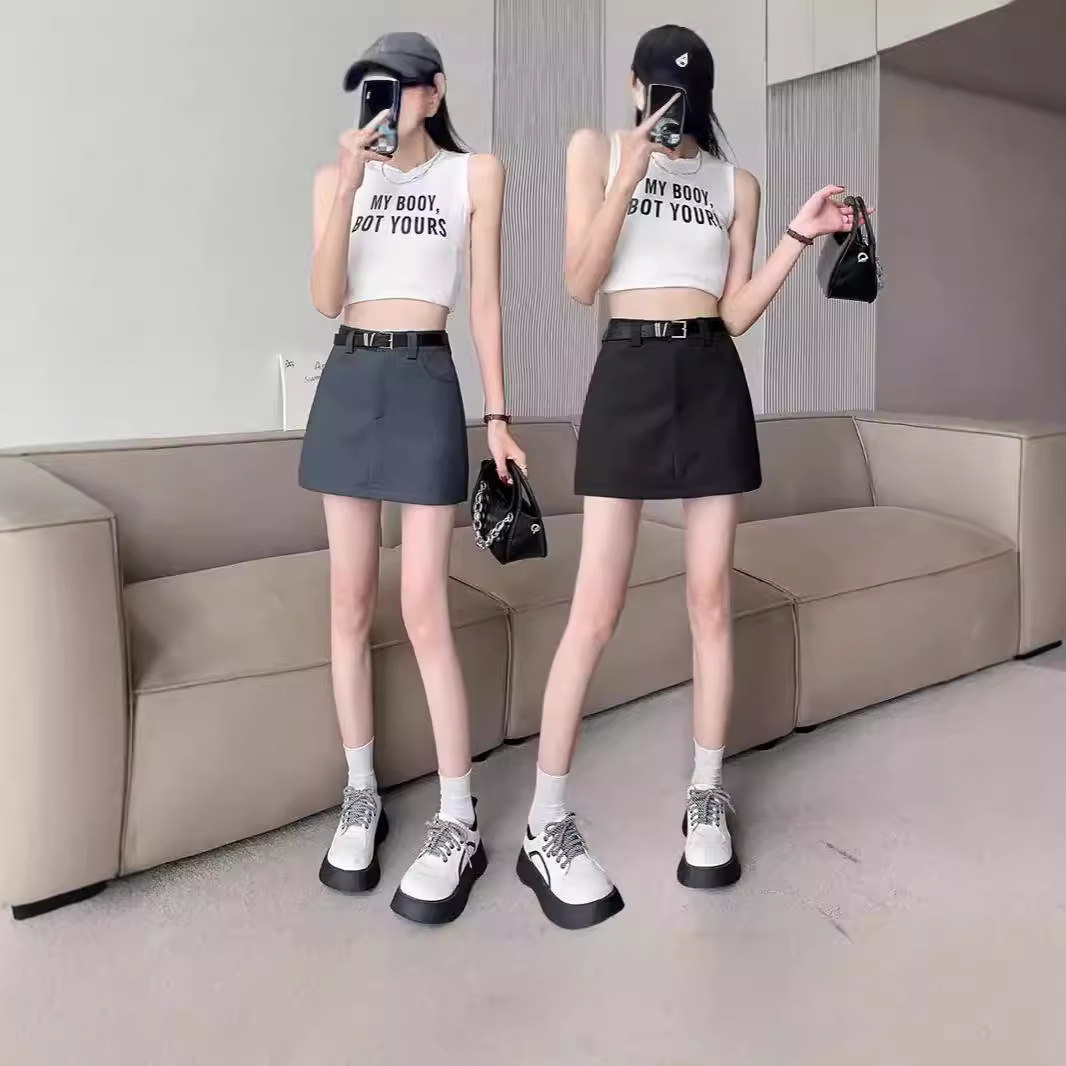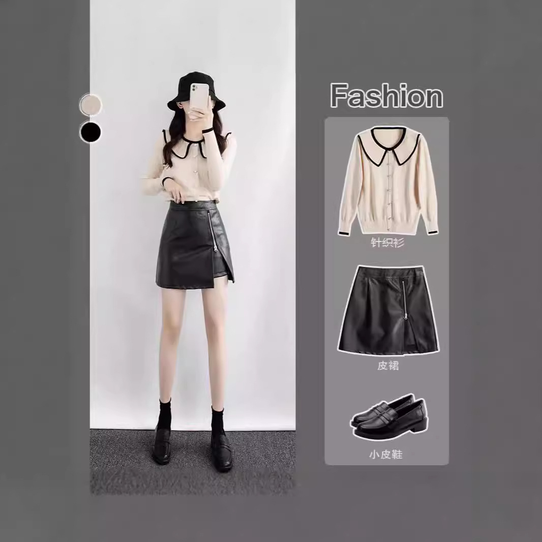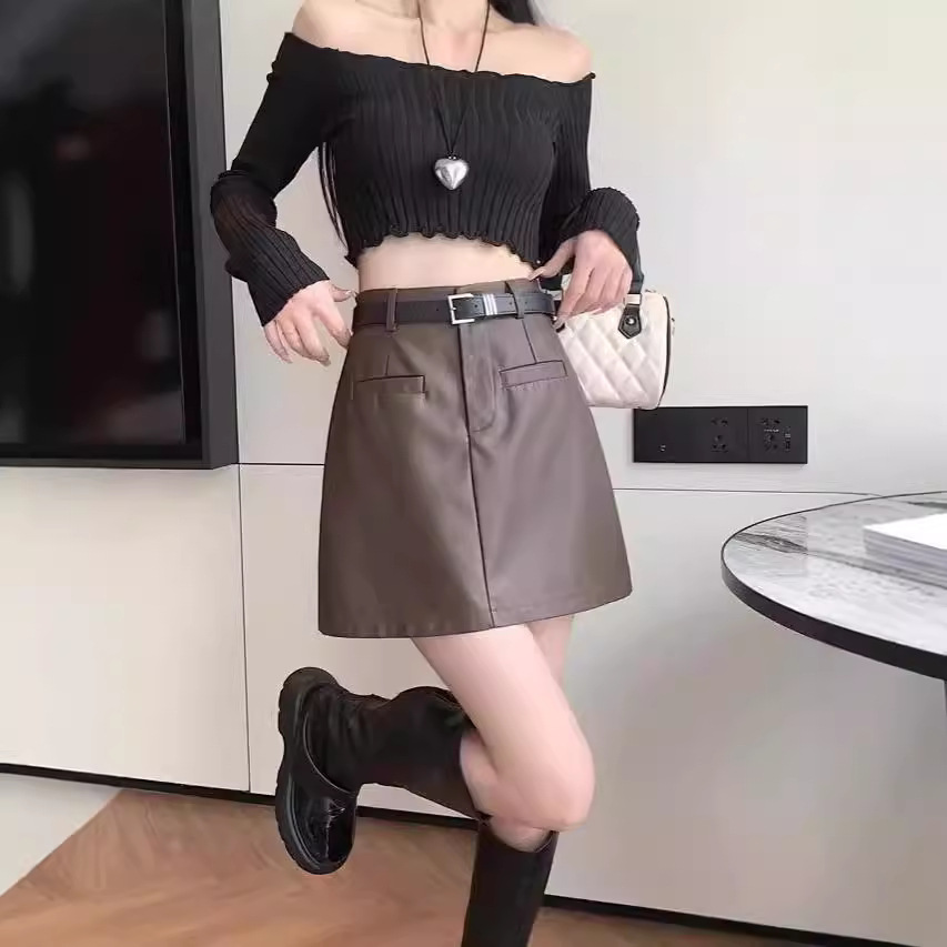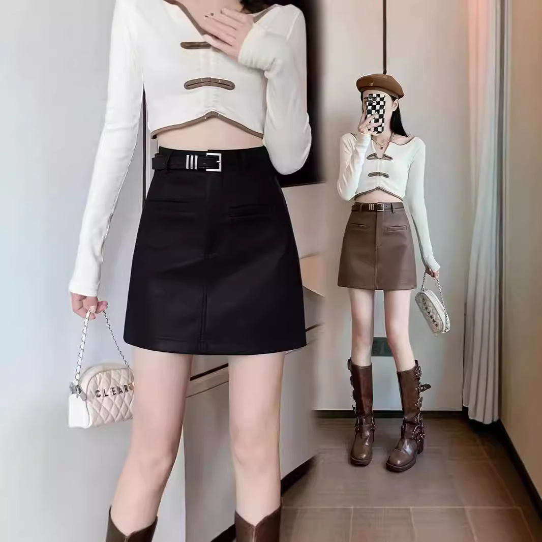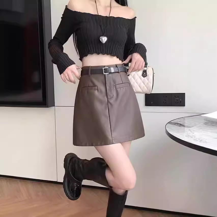 2024秋冬新作ハイウエストつや消しマットpu皮洗水皮スカート半身スカートa字スカートヒップショートスカート