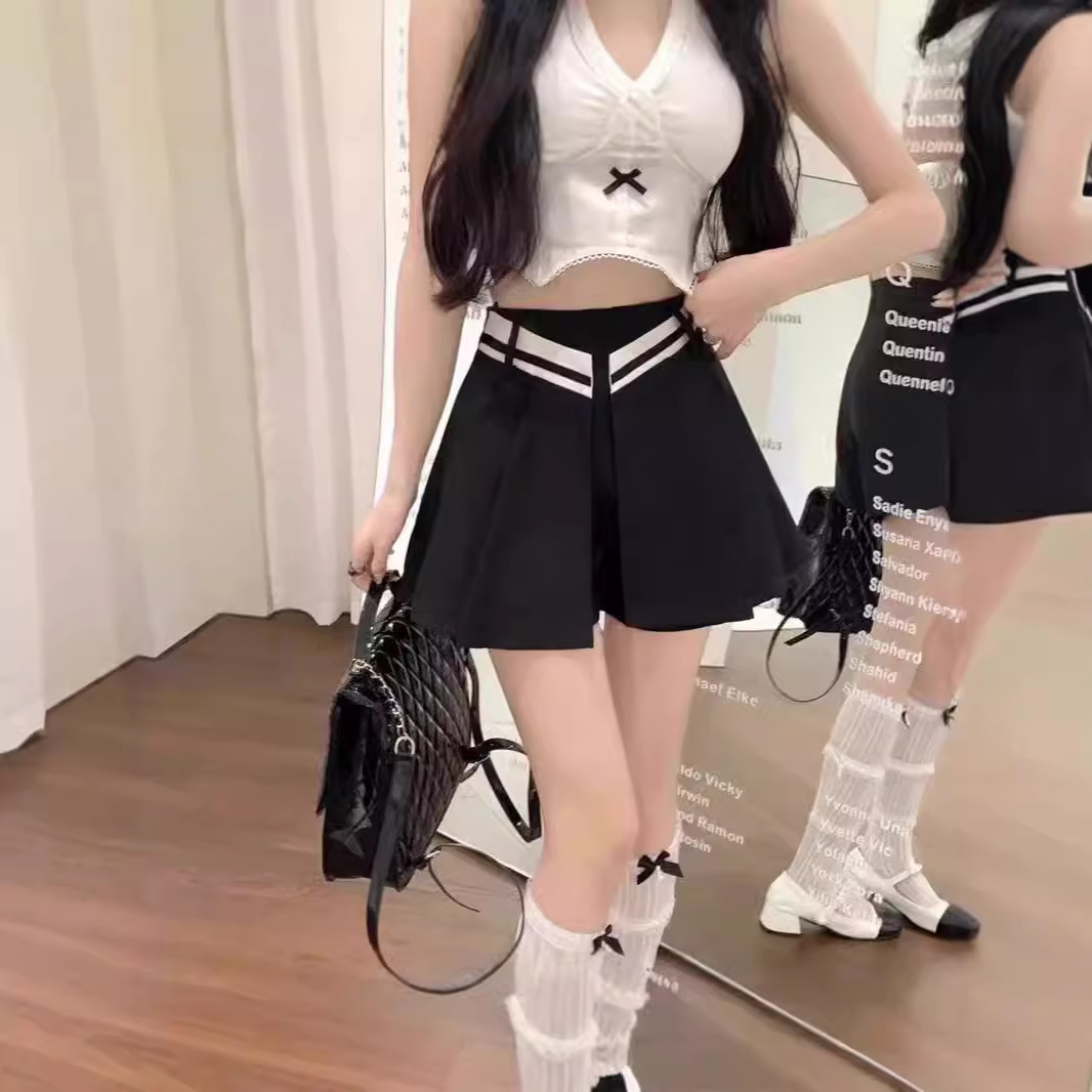 不规则なスーツのパンツのスカートの女性のデザイン感のギャルのカジュアルな広脚のホットパンツのハイウエストのA字のスカートのズボンの秋