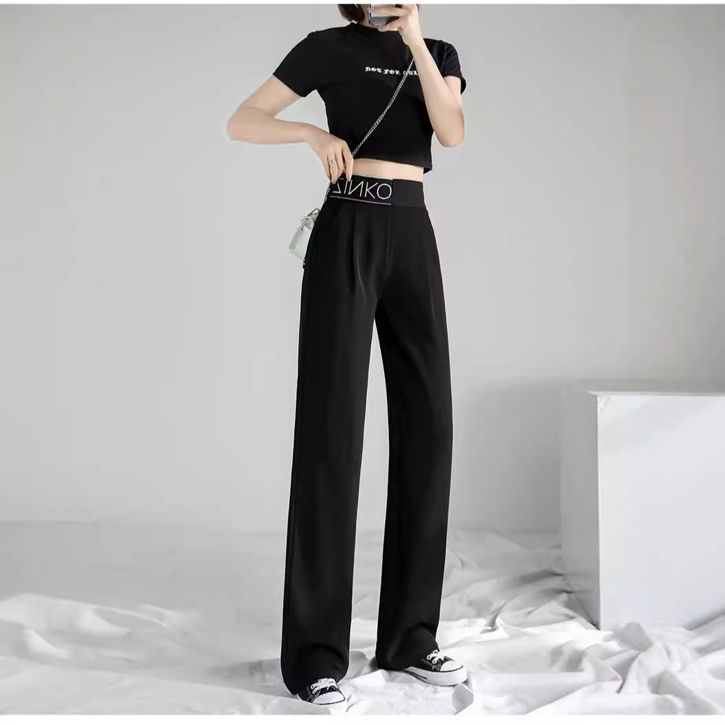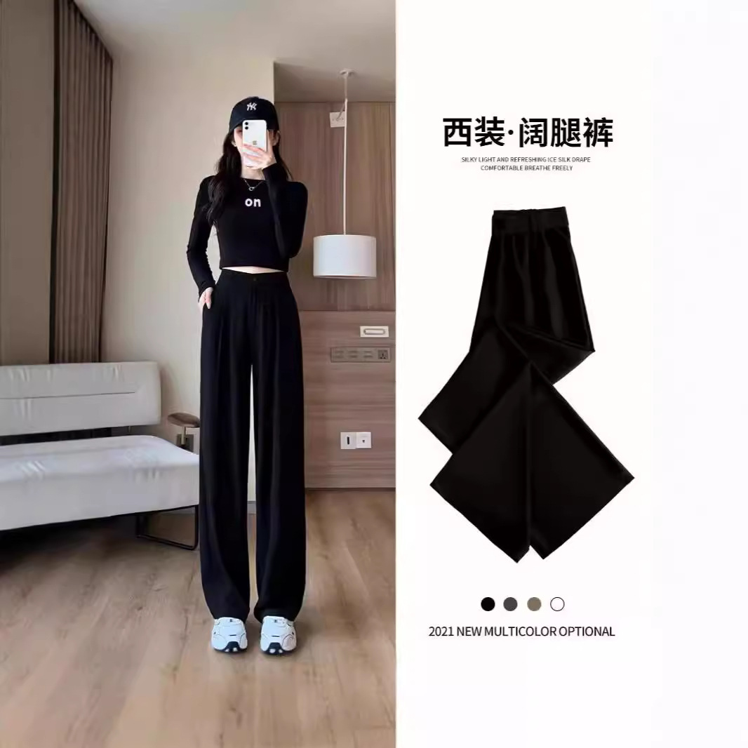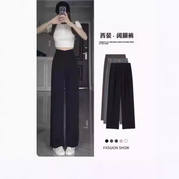 ゆったりとしたワイドパンツの女性2024秋の爆発的な黒いズボンの垂れ下がったスーツのズボンの高腰ストレートパンツのカジュアルパンツの女性