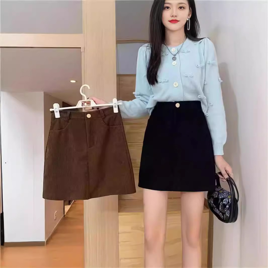 カレー色のコーデュロイのスカートの女性の秋冬の新型のヒップのスカートのスカートの高腰はやせている小柄な百合a字のスカートを現します。