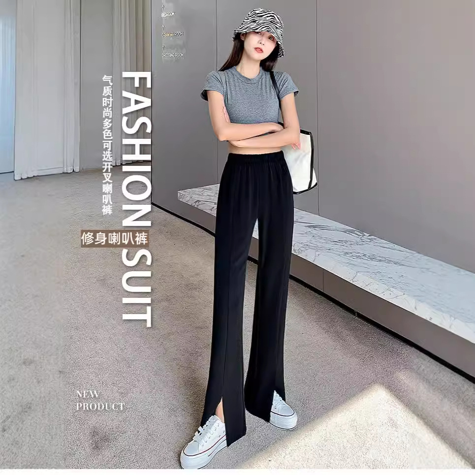 オープンスーツのズボンの女性春秋の新型の垂れ下がった感じの狭い版はやせていますカジュアルなストレートのズボンの高い腰の広い足の小さいラッパのズボンを現します。