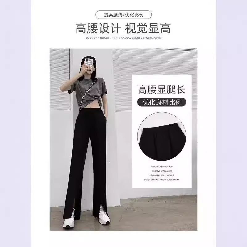 黒いスーツの半ズボンの女性の秋の小さい背の高い腰のa字のカジュアルな広腿のズボンの2024年の新型の外は靴のズボンを着ます。