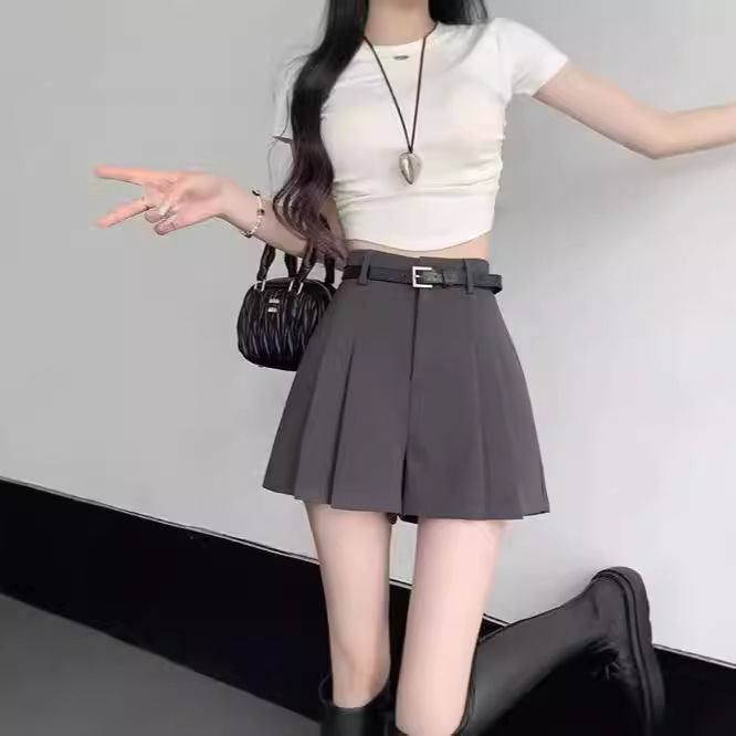 2024新型の不規則なスーツのショートスカートの女性学院風のデザイン感のあるホットパンツのハイウエストプリーツスカートjkショートパンツ