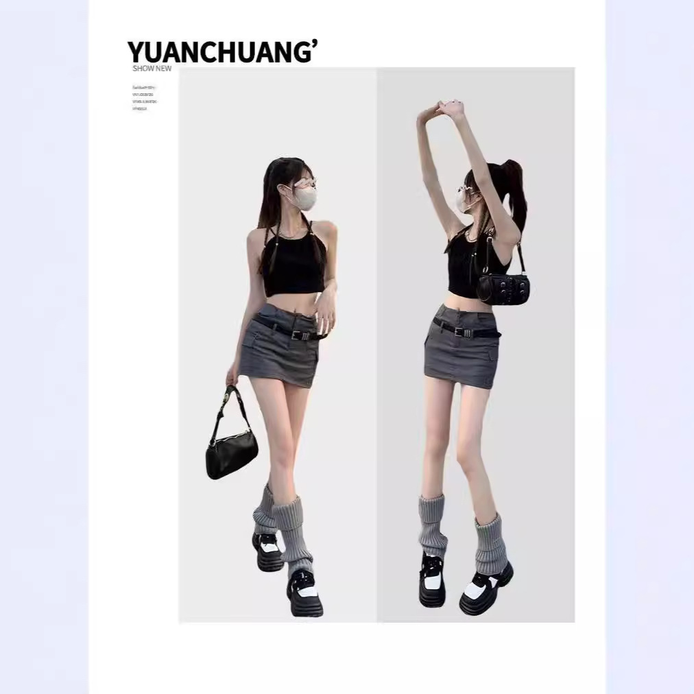 グレーのスーツのスカートの女性の夏の2024の新型のスカートの高腰はやせています。