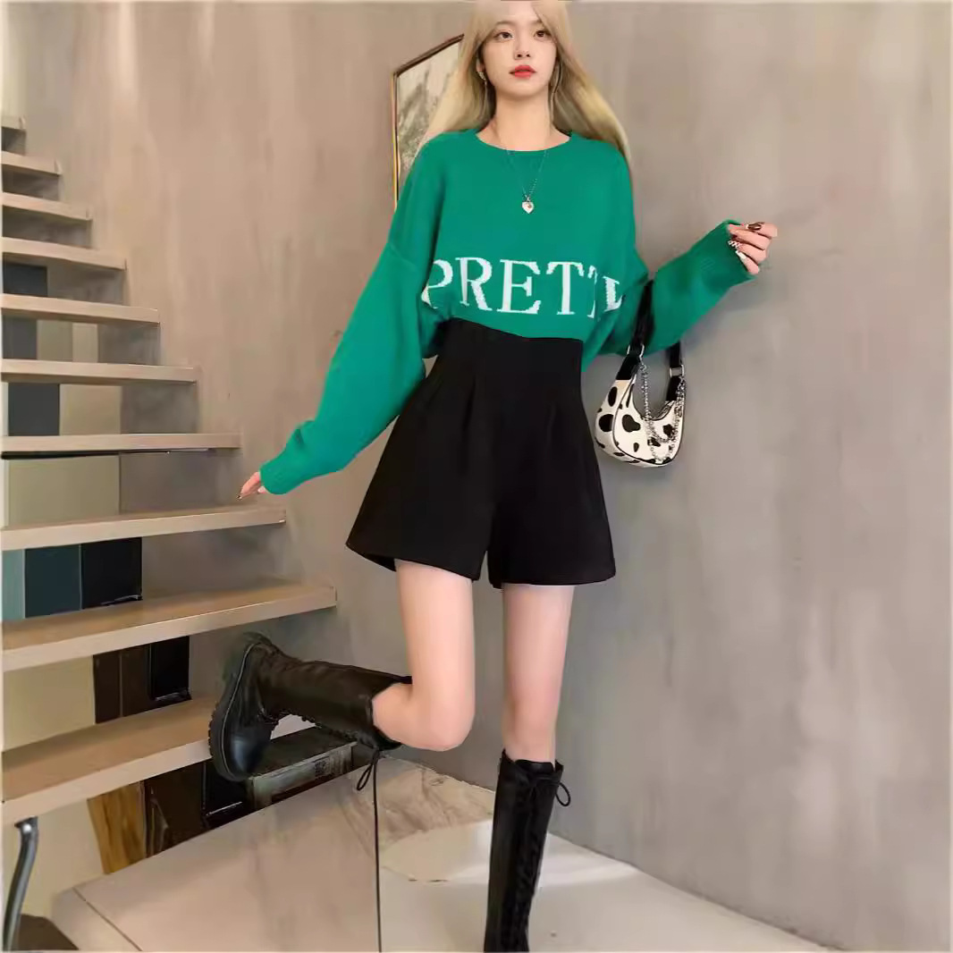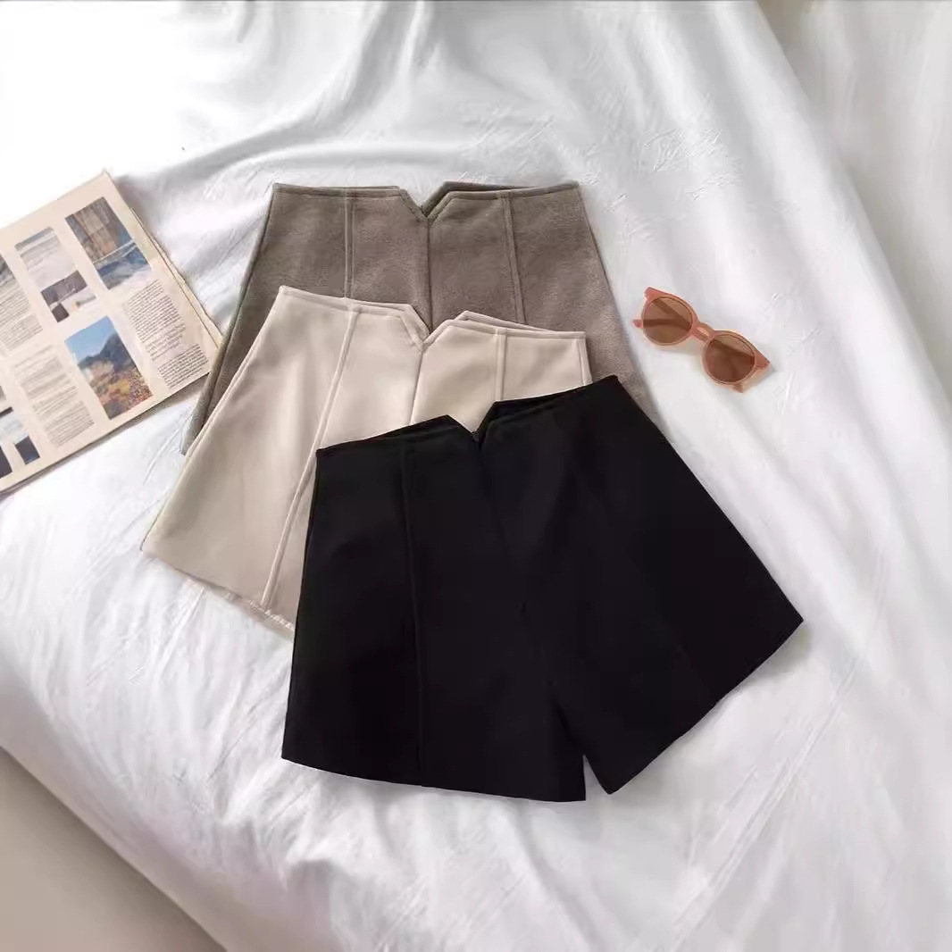 ハイウエストのラシャのショートパンツの女性秋冬2024の新型韓国版ins学生はカジュアルでやせています。