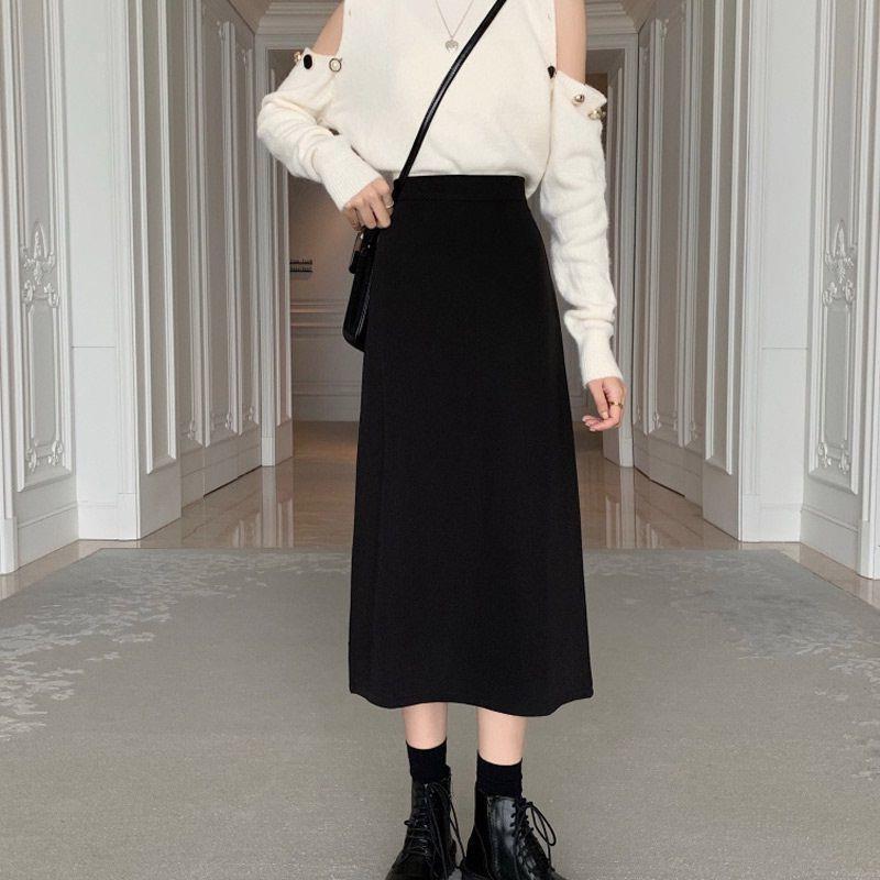 黒い半身のスカートの女性の春秋2024の新型のテンションが高くて、腰がやせています。