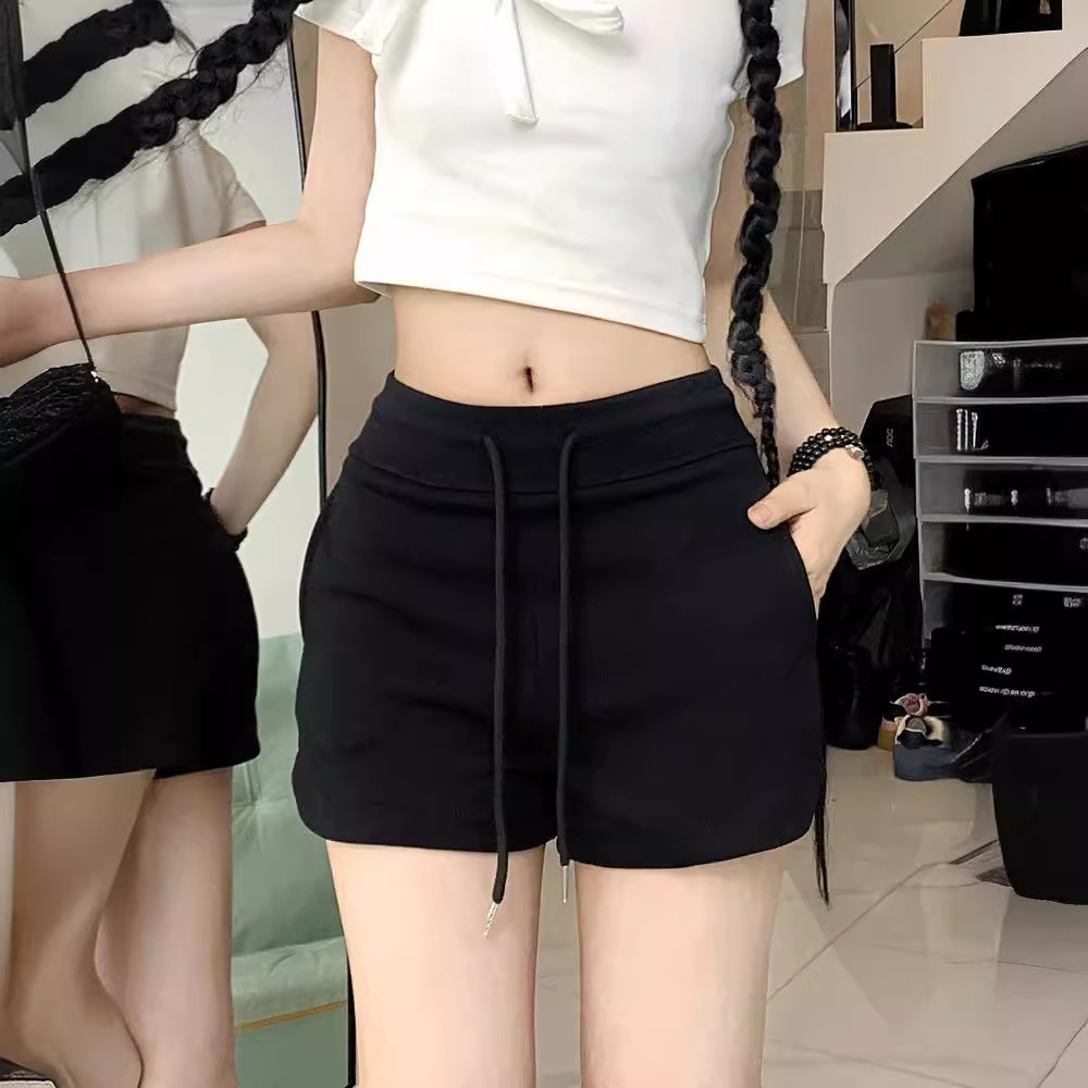 超高腰紐黒半ズボン女性セクシーギャルデザイン感小衆夏小背a字超短ホットパンツ