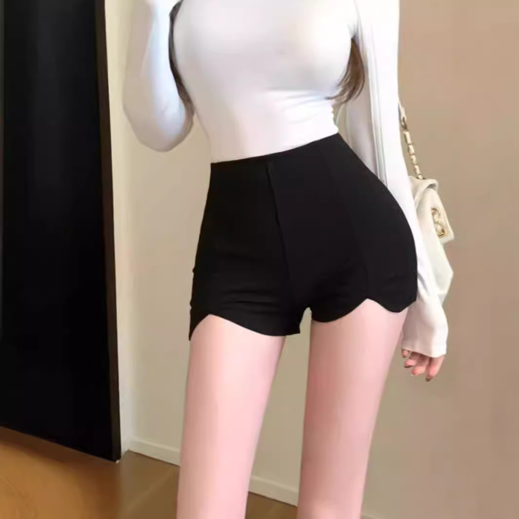 黒い腰の高い半ズボンの女性の夏の外は弾力のガードルを着てお尻のカジュアルなズボンの不規則なセクシーなギャルの底の熱いズボンを包みます。