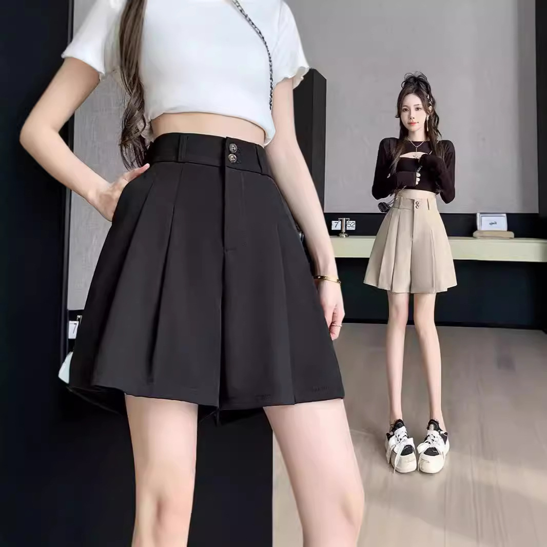 腰の高いスーツの半ズボンの女性の2024年の春夏の新型の百合外はA字の広い足を着て痩せています。