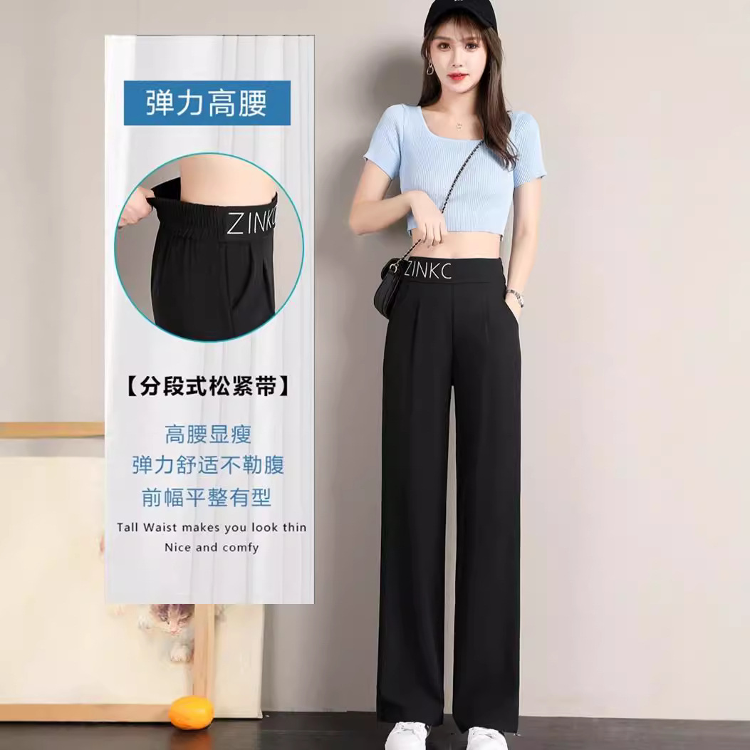 氷糸女装広脚ズボン春夏2024年新型直筒高腰ズボンの垂れ込み感がゆるいシンプルなスーツズボン