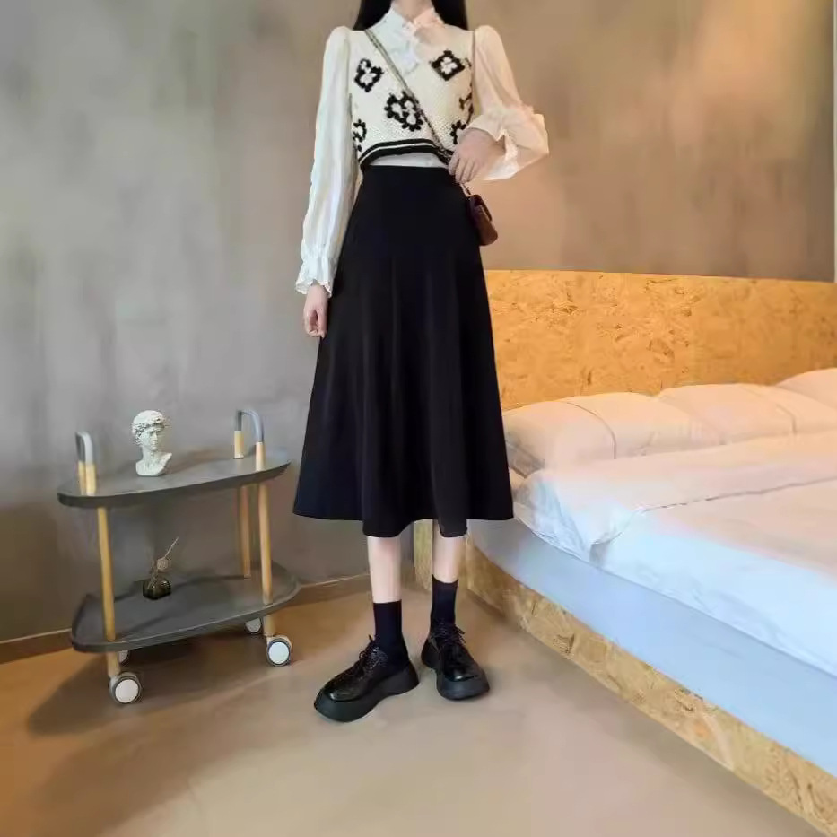 大きいサイズの高腰傘のスカートの半身のスカートの婦人服の秋の空気の質感の小さい大衆の百のスカートはやせている洋気のa字のスカートのスカートを現します。