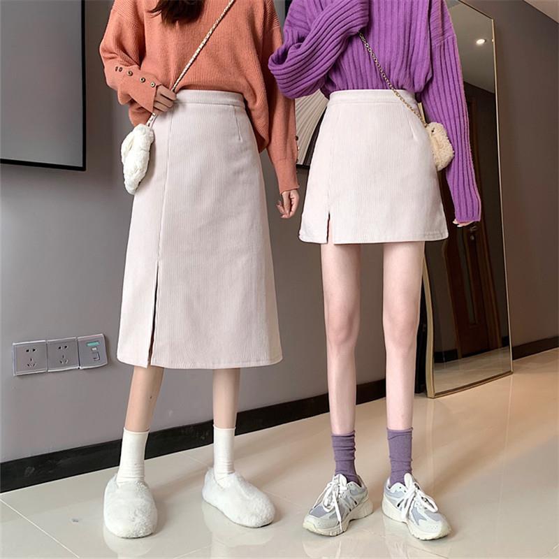 春と秋のオープンフォークA字半身スカート2024新型洋気高腰がやせているコーデュロイの純色がヒップスカートになっている