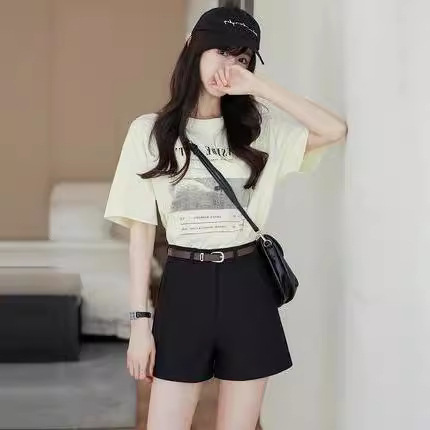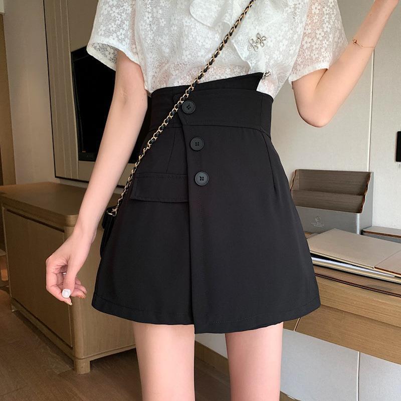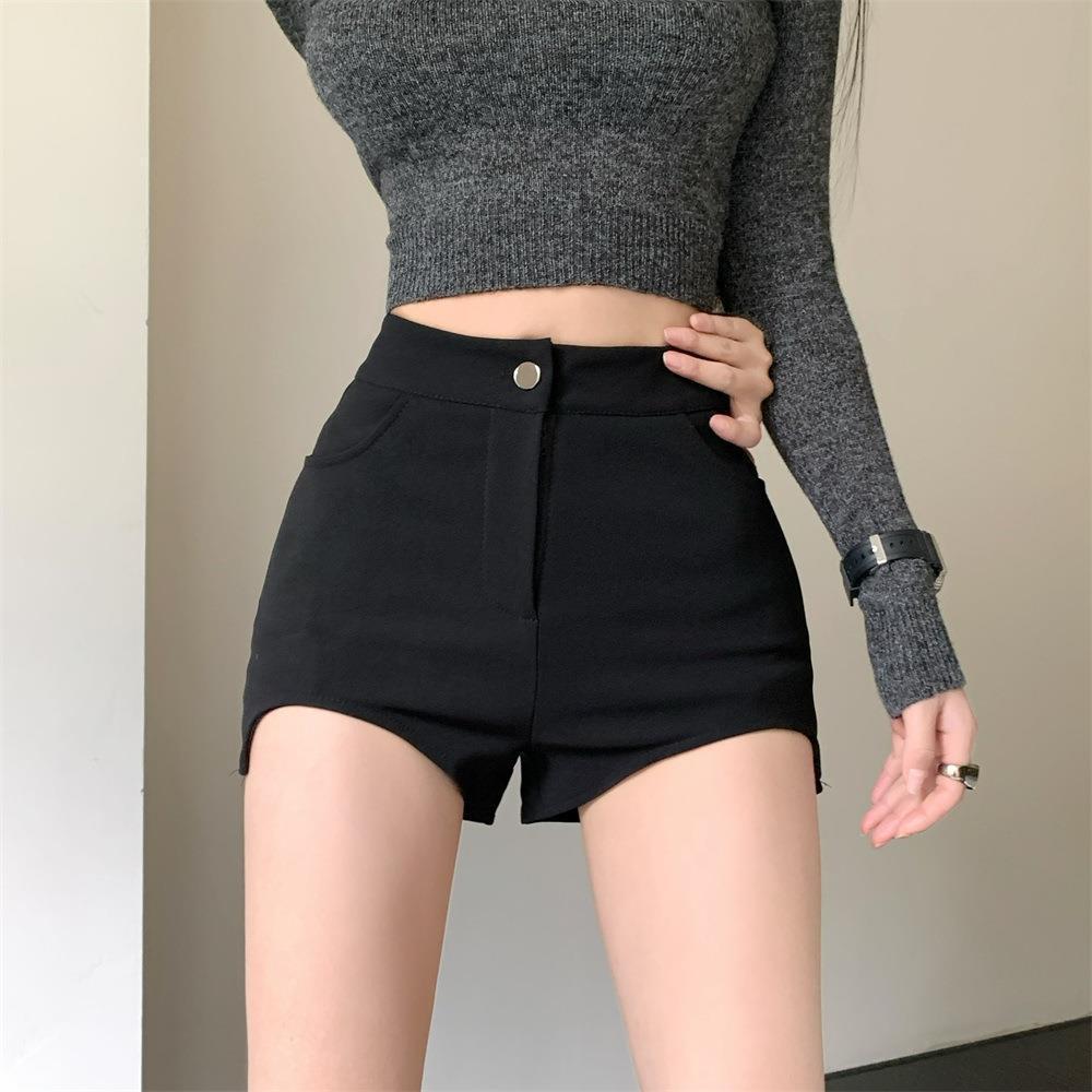 不规则ブラックスーツショートパンツ女性春夏小柄ギャルa字ズボンハイウエストスリム超ショートホットパンツ潮