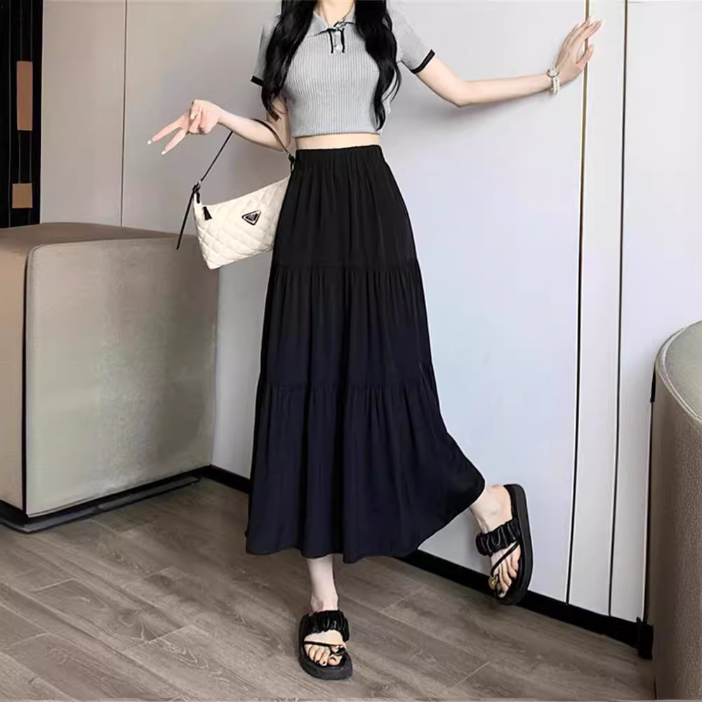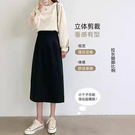 スカートの女性は秋冬の中で長いタイプのa字版の黒色の腰が高くて太っています。