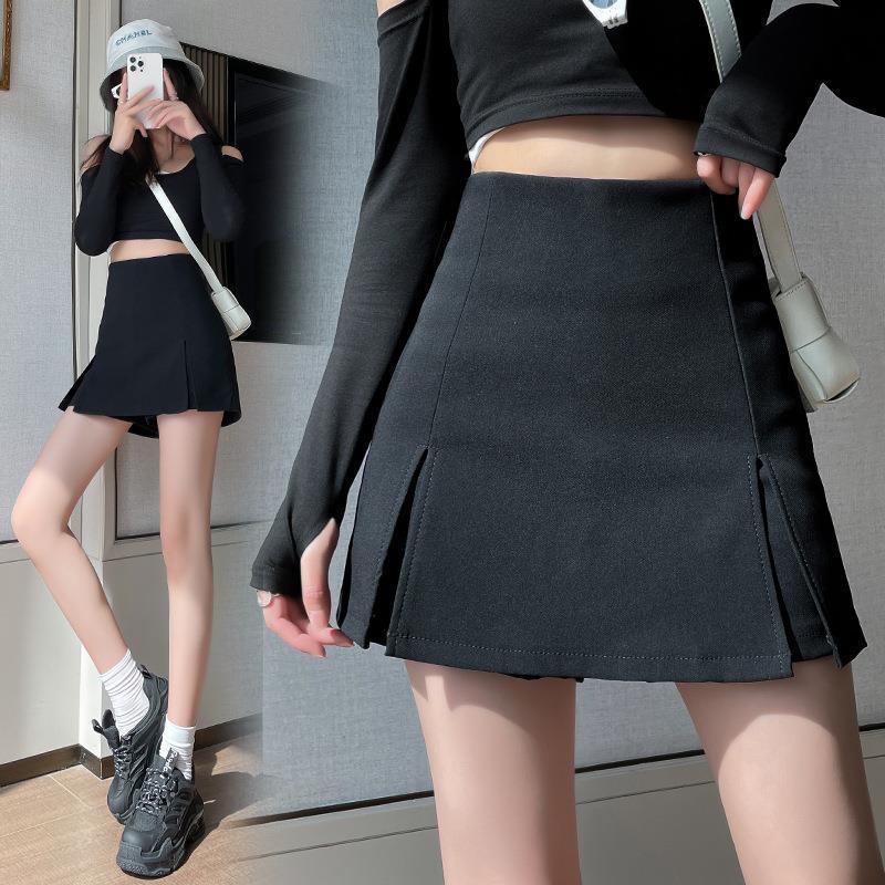 セクシーなハイウエストのスカートの女性の夏の2024新型のお尻の短いスカートのズボンの黒いスカートはフォークを開けて明らかにやせているa字のスカートを現します。