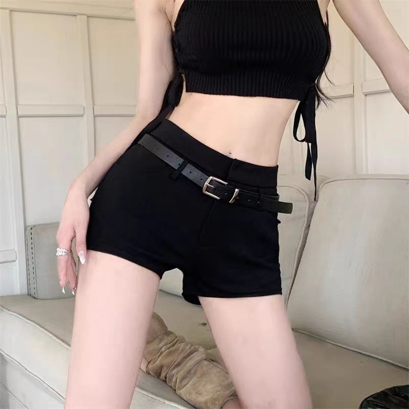 腰の高いギャルのショートパンツの女性の夏の2024の爆発の小さい弾の百合の気質の修身はやせている黒色の熱いズボンを現します。