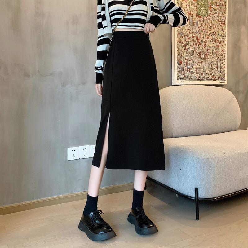越境秋冬女装半身スカートの中の長さは腰が高くて痩せています。