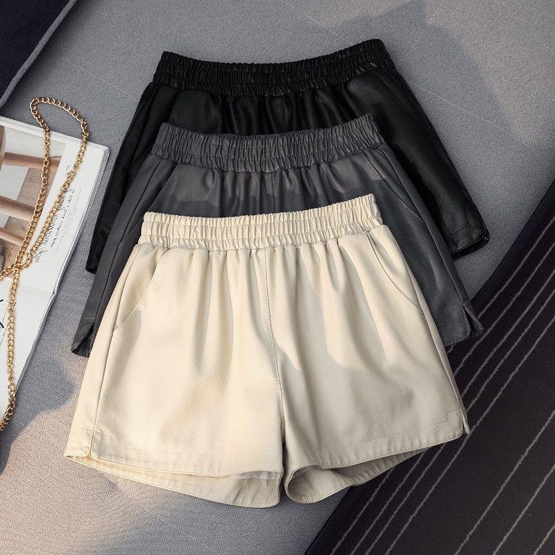 皮半ズボン女性高級感秋冬新作高腰ゆったり痩せa字広脚pu皮ズボン