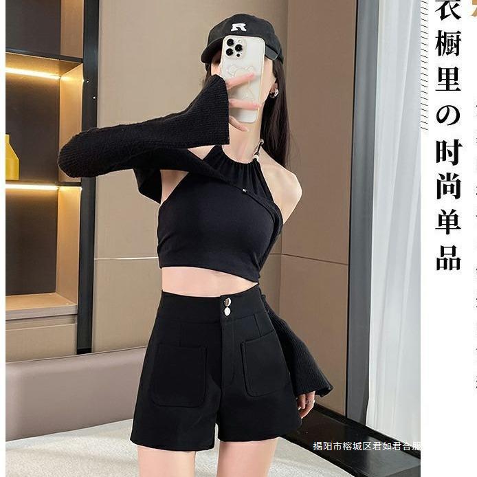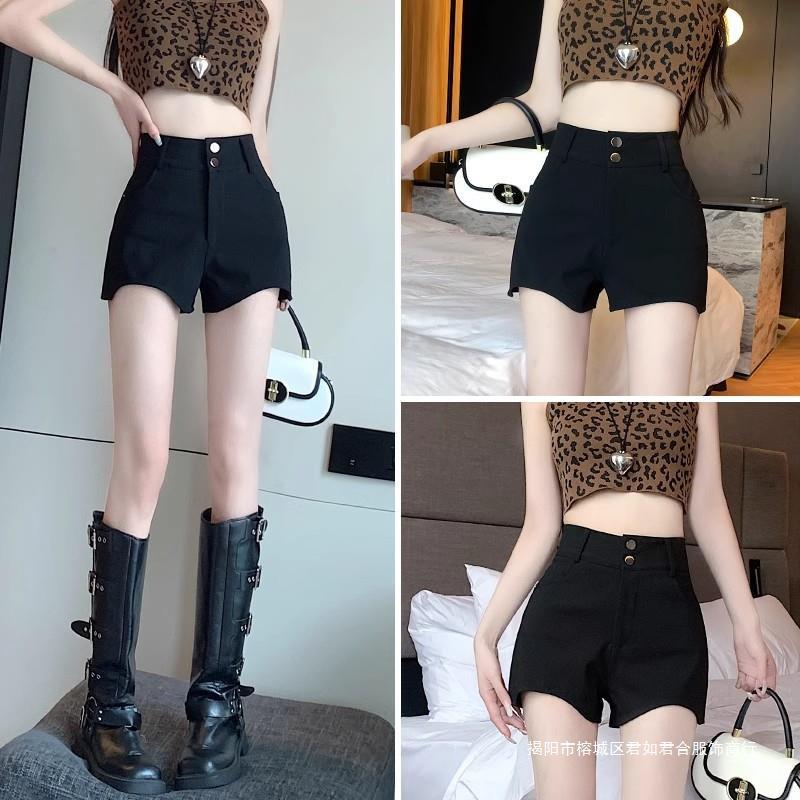 スーツの半ズボンの女性団の夏の2024の新型の早春の弾力性の外は黒色のセクシーな修身の腰の熱いズボンを着ます。