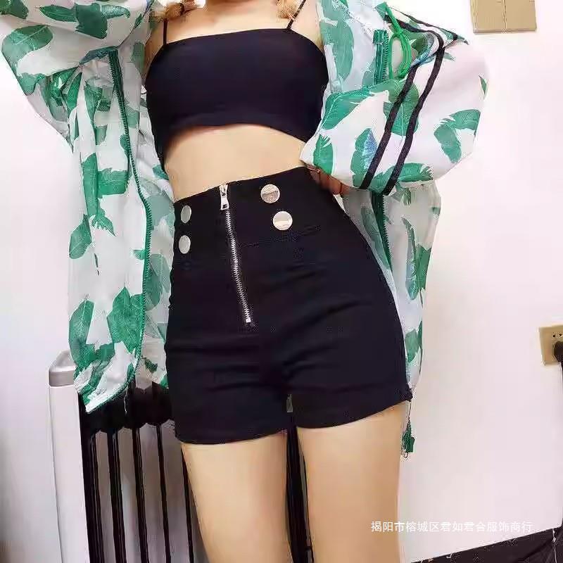 黒セクシー高级感ホットパンツハイウエストストレッチ小柄スリムショートパンツレディース夏2024新作ヒップパンツ薄い