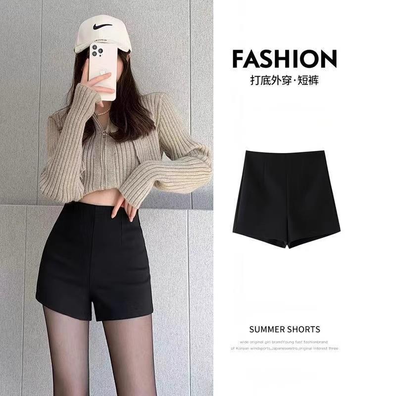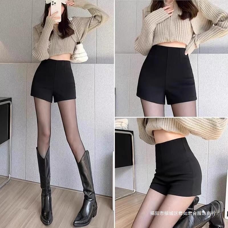 セクシーな黒いスーツの半ズボンの女性2023新型の秋冬の小さい背は底を打って明らかにやせています。