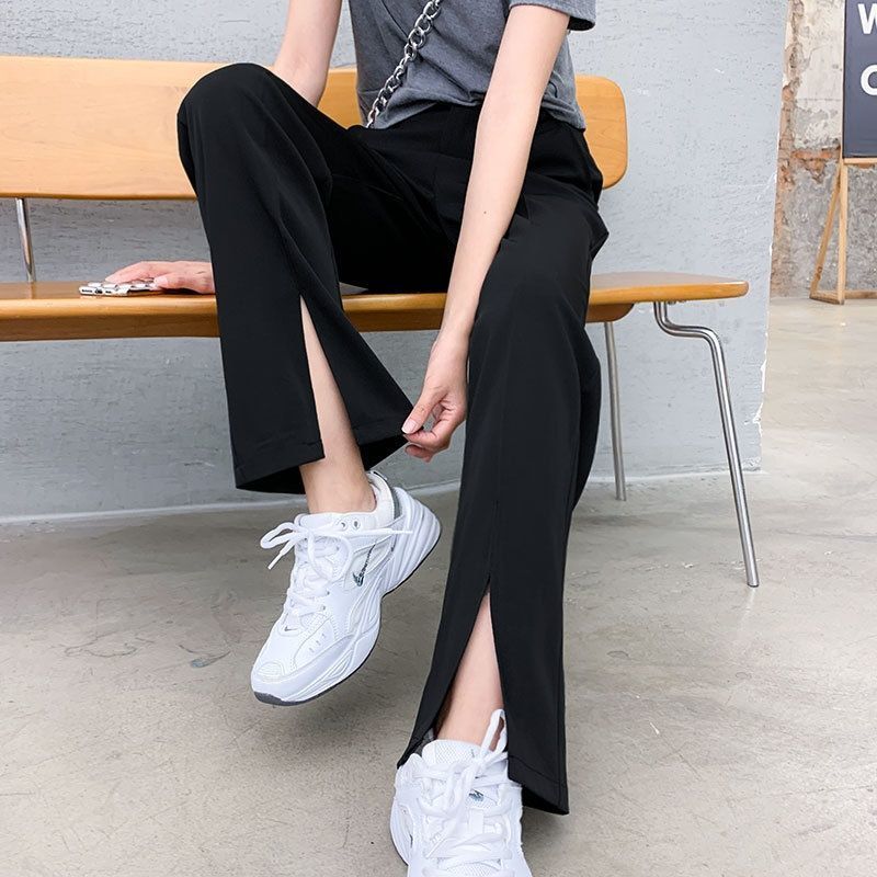 黒いスーツのショートパンツ2024新型秋冬a字の不規則な外着の小さい人のカジュアルな大きい足の靴のズボンのスカートのズボン