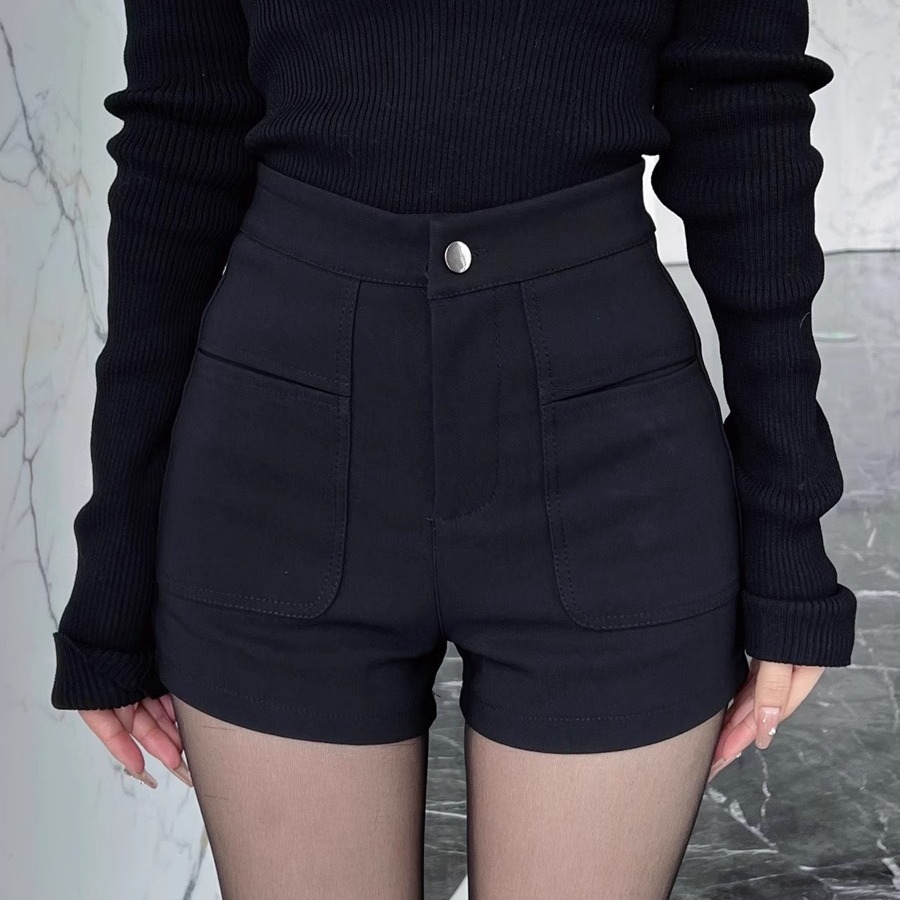 黒い半ズボンの女性2024の新しい秋の春の下の服が行方不明になりました。