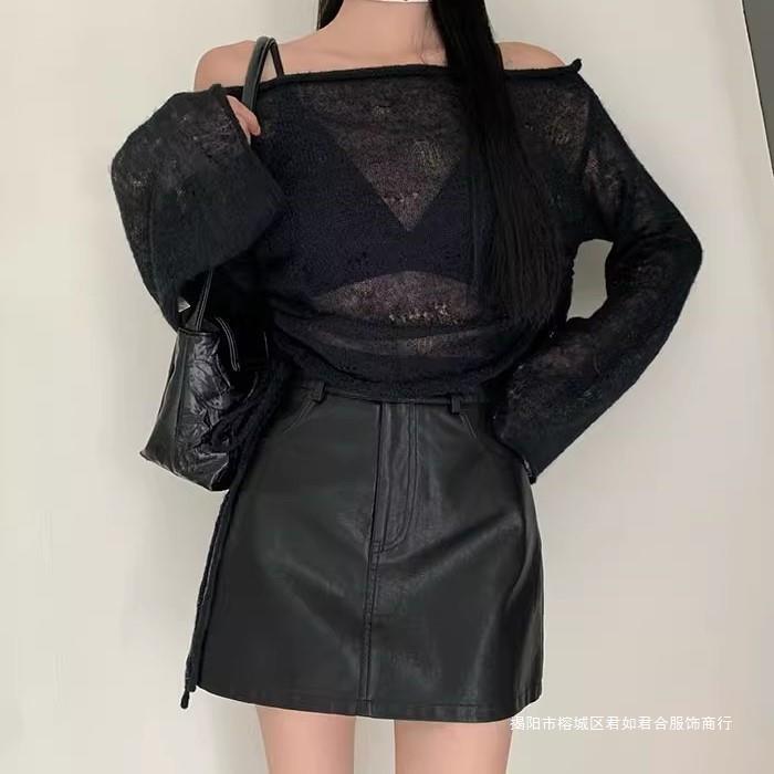 黒の半身のスカートの女性の夏のハイウエストのa字のスカートのズボンの2024年の新型の小さい背はお尻の1歩のスカートを包みます。