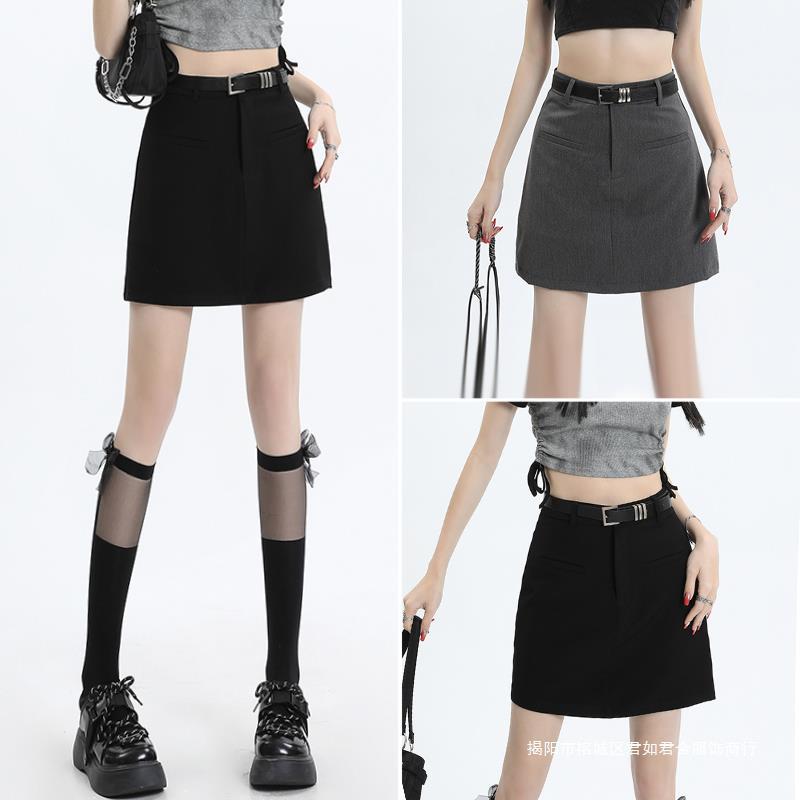 灰色の高腰のスーツのスカートの女性の2024早春の新型の防走光学院の風のa字はお尻の半身のスカートのスカートを包みます。