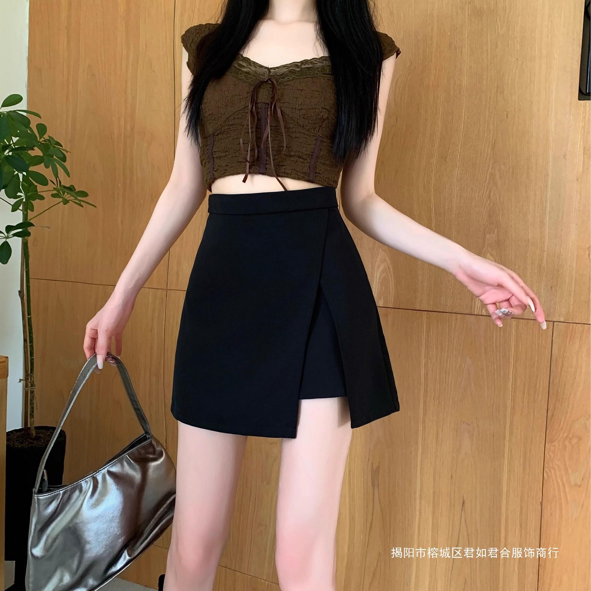 黒いフォークのスカートの女性の夏の薄いタイプの高腰はやせています。