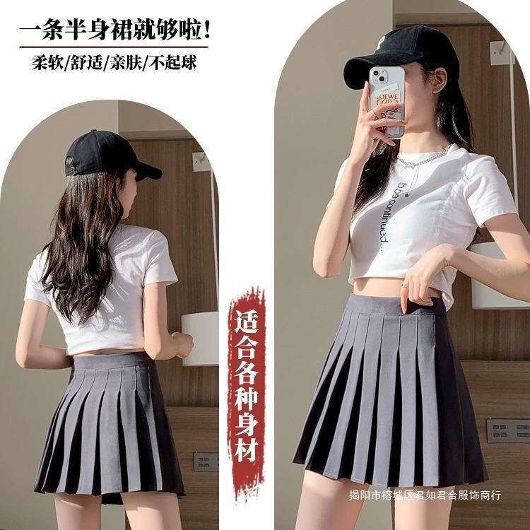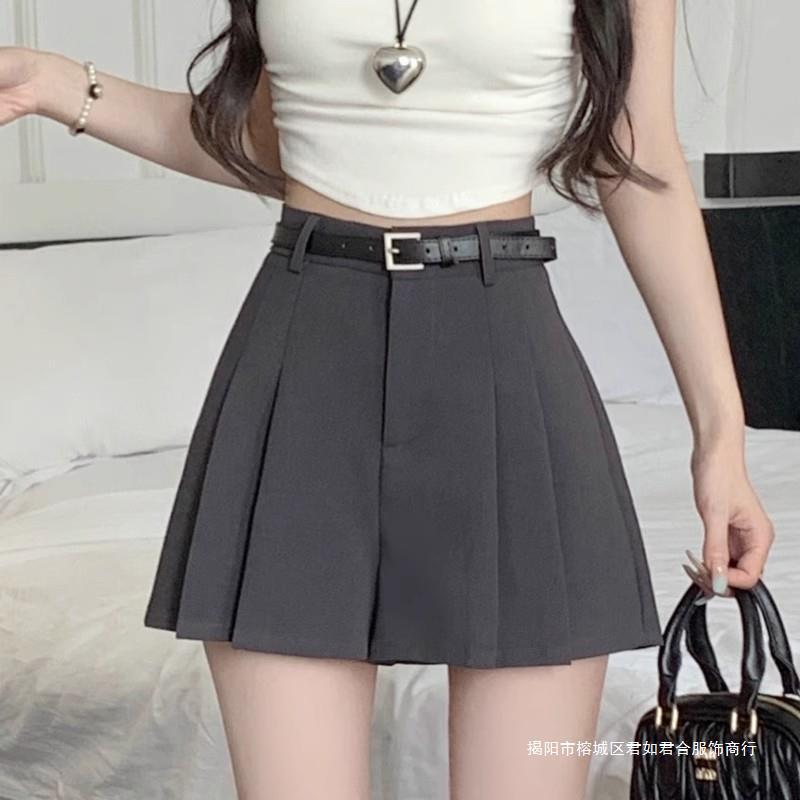 グレーのスカートのスーツのスカートの子供の2024年の新型の春の薄いタイプの高腰のa字のjkのスカートのスカート