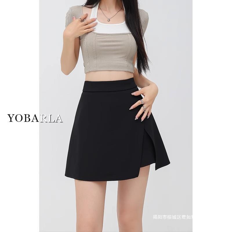 黒い夏の高腰側のフォークヨガのズボンのスカートの女性の光を防ぐアメリカのデザイン感a字の運動はお尻のスカートを包みます。
