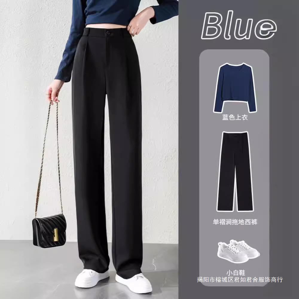 黒いスーツのズボンの高級感の垂れ下がった感じのまっすぐな筒の小さい男のフォークの狭い版の広腿のズボンの子供の2024の新型の春秋